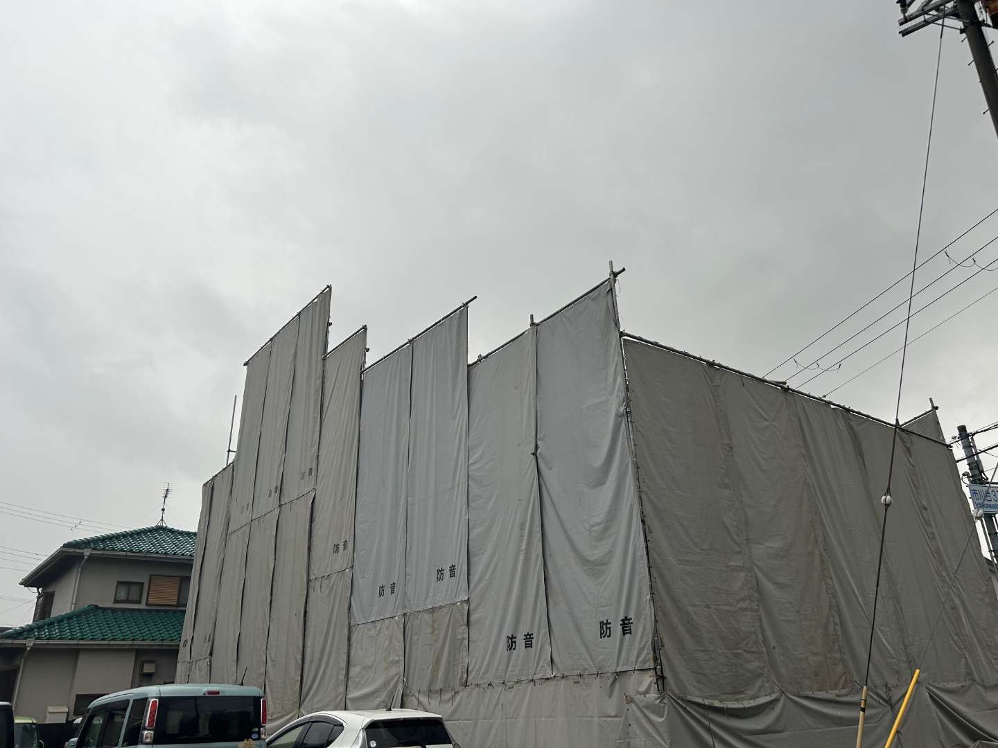 躯体外部の人力、建設機械による解体する場合は、騒音、粉塵が問題となってきます。少しでも軽減するために防音シートで養生させていただきます。屋根の形状に合わせ確実に施工いたします。