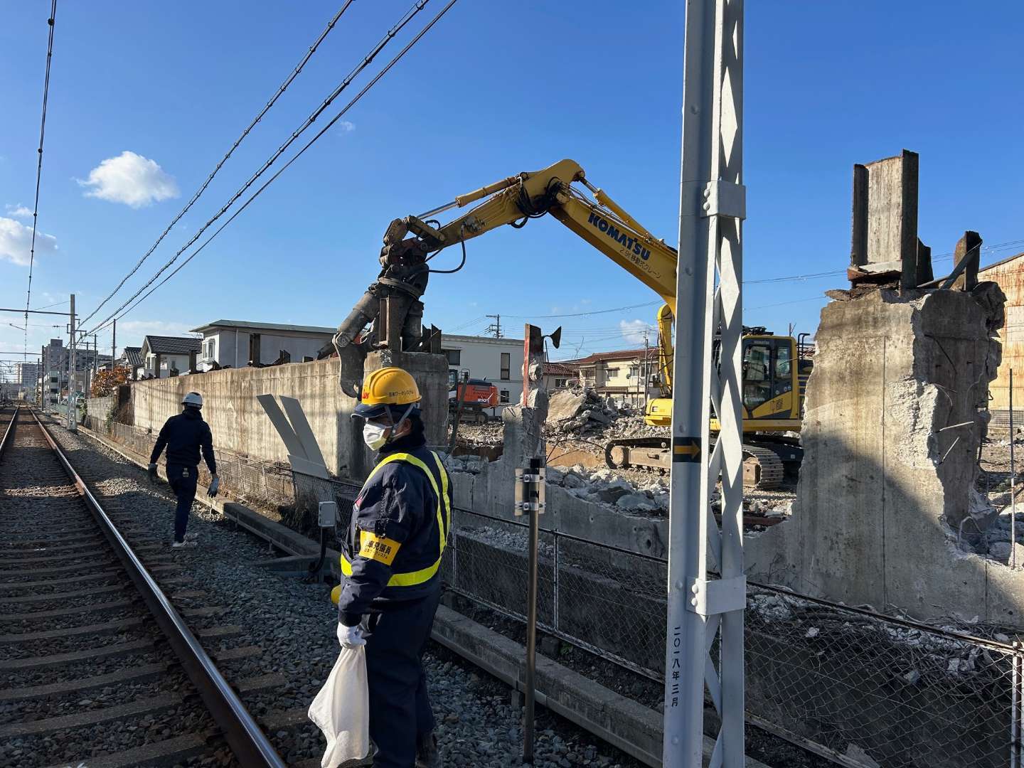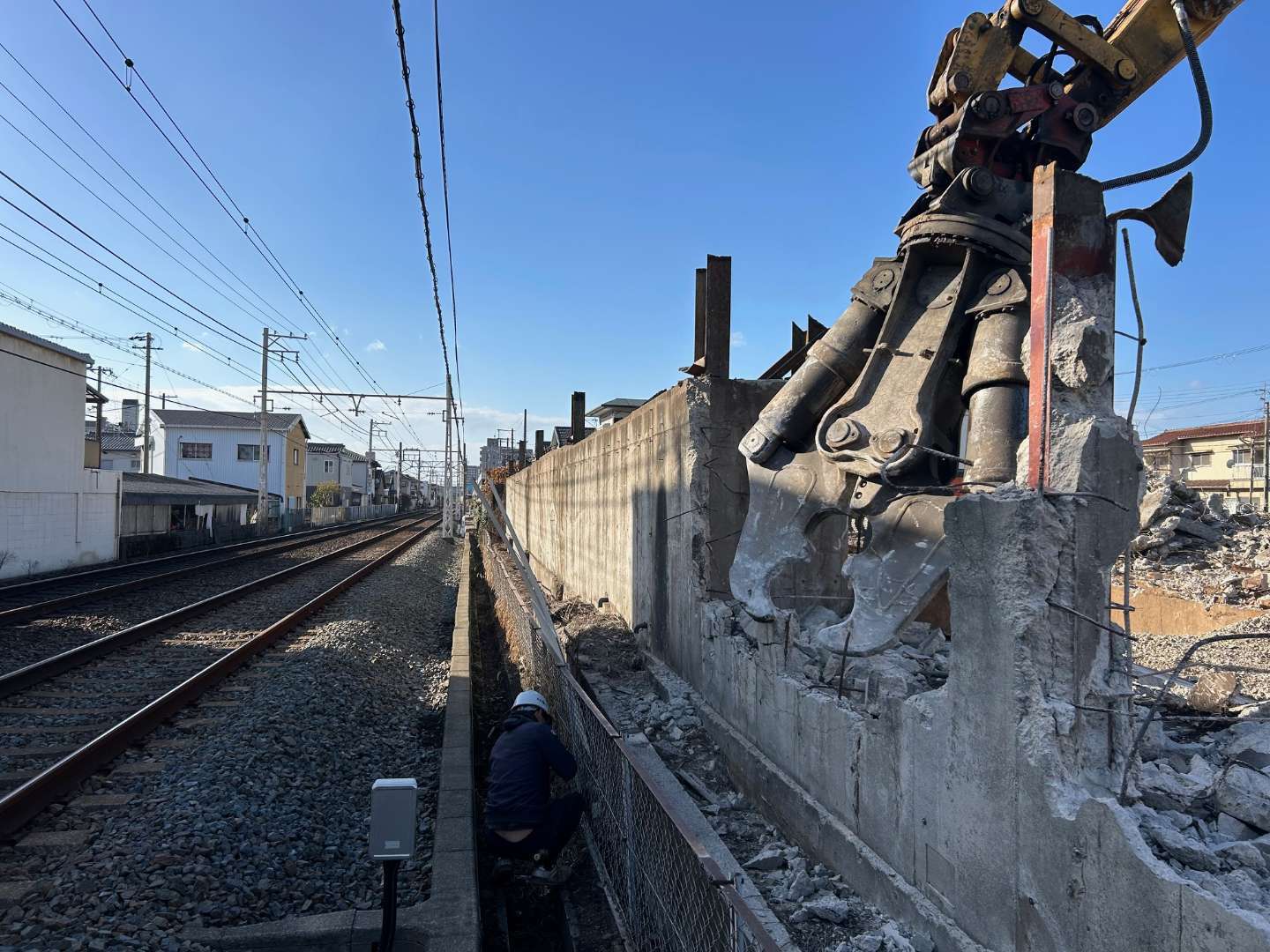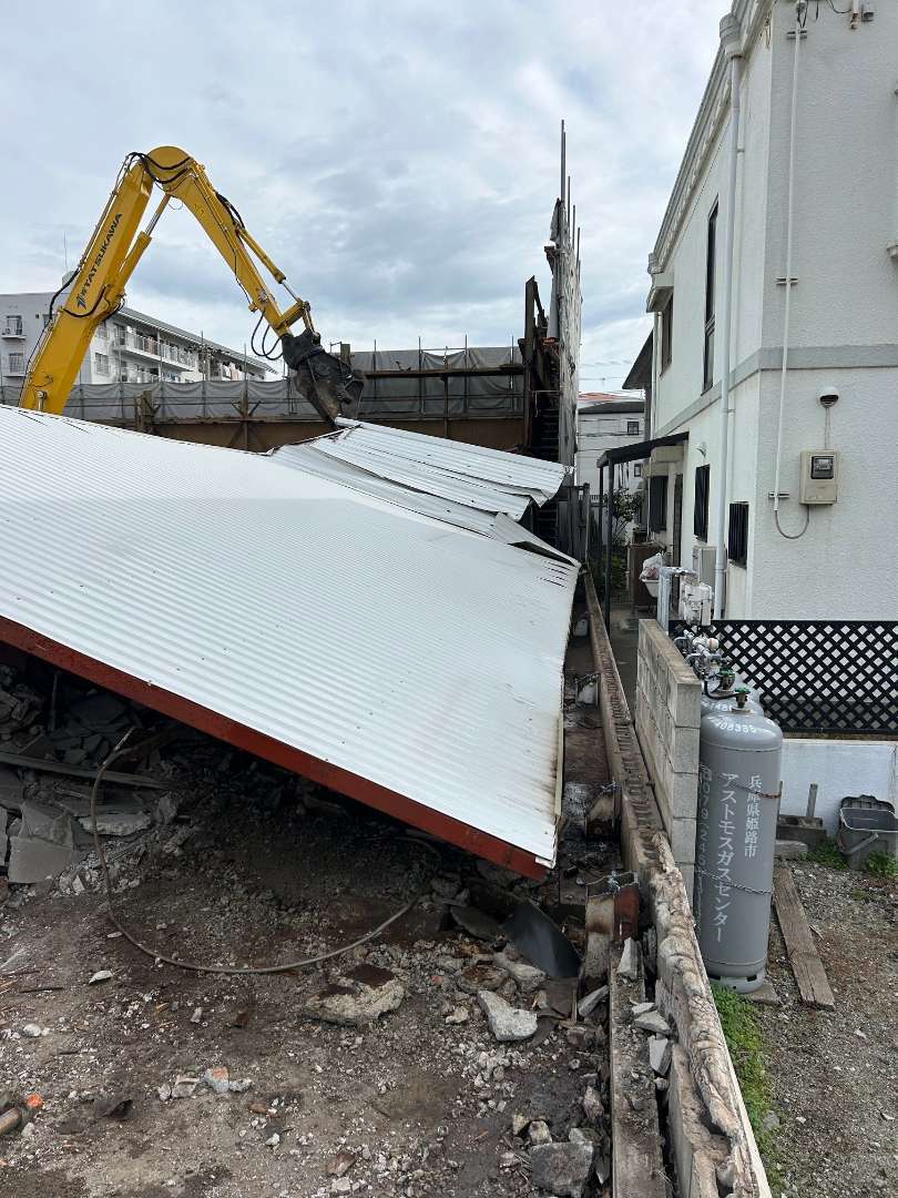 本工事は、山陽電鉄様に近接した建物の解体であったため、同社と綿密な事前協議を重ね、万全の安全対策を講じたうえで慎重に施工を進めました。