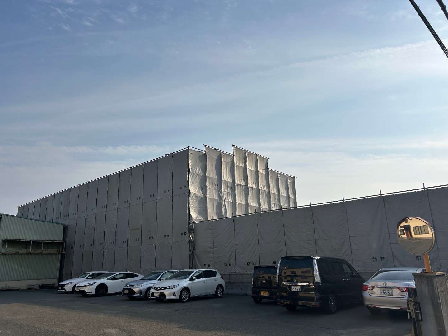本現場は高圧架空電線が近接しているため、安全対策として防護管を設置したうえで施工を行いました。