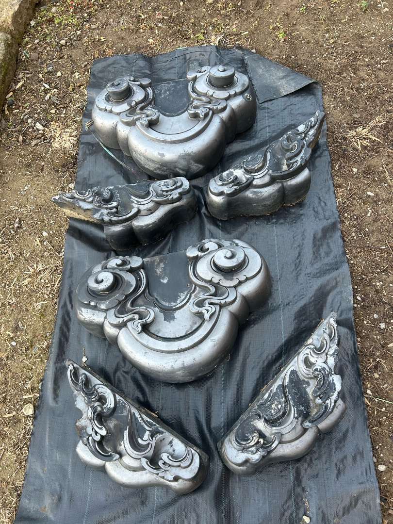 施主様の意向より庭石、縁石、鬼瓦の再利用。